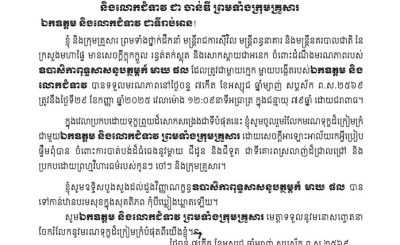 ក្រសួងមហាផ្ទៃនៃព្រះរាជាណាចក្រកម្ពុជា តាមរយៈបណ្តាញសង្គម នៅថ្ងៃទី២៩ ខែកញ្ញា ឆ្នាំ២០២៥ បានបង្ហោះផ្សាយនូវខ្លឹមសារដូចខាងក្រោម៖